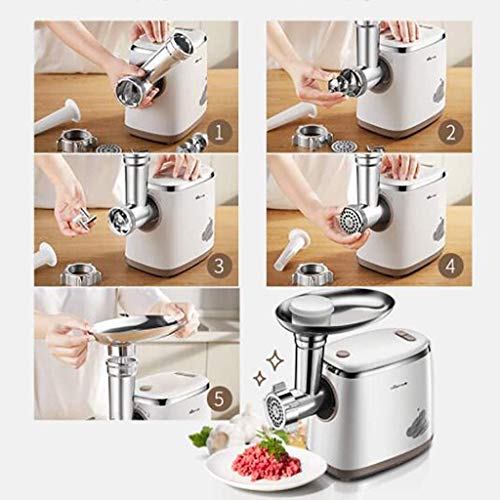 Abnehmbare Anbaugeräte für einfache Reinigung: Die Komponenten unseres Fleischwolf Maschine sind einfach zu installieren, zu zerlegen und clean.Only Schneidmesser und Schleifplatten sind spülmaschinenfest, anderes Zubehör von hand.Use neutralen Reinigungsmitteln, wenn Reinigung gewaschen werden muß.