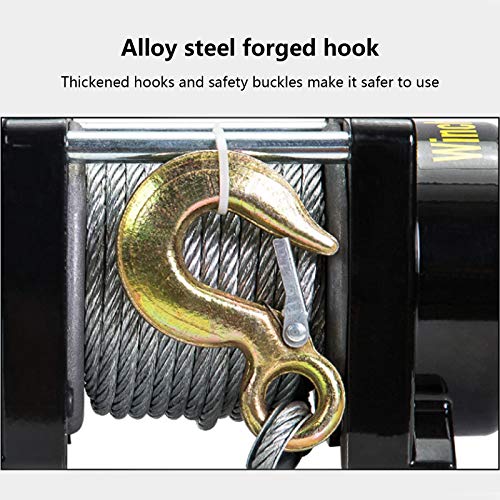 ▲ Edelstahldrahtseil: Die elektrische Winde ist mit einem robusten 28M Stahlkabel mit hoher Zugfestigkeit und nahezu wartungsfrei ausgestattet. Die Winde ist einfach zu bedienen. Nach dem Loslassen der Taste wird das Kabel abgesperrt