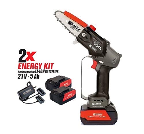 ZP 100 Professioneller Hochentaster mit hoher Schnitteffizienz, Leistung 350 W, 18 V, mit bürstenlosen Motoren, Schnittstange 3 Taxe, 75 mm, max. Schnittlänge 100 mm, variable Geschwindigkeit max. 8 m/s, 2 Li-Ion-Akkus 5 Ah 640, Gewicht ohne Stromspeicher 925 g, der tragbaren Hochentaster von Zanon, einfach zu bedienen mit einem Hohe Schnitteffizienz, leistungsstark und akkurat in Anbetracht die hohe Qualität der internen Komponenten, zurückhaltend ausgewählt und getestet, um ein einzigartiges Produkt zu bereitstellen. Darüber hinaus kann die Schnittleistung 100 mm bei einer Geschwindigkeit von 8 m/s mit sauberen Schnitten, die die Wundheilung der Äste vermindern. Ausgestattet mit 2 wiederaufladbaren und austauschbaren Li-Ion-Akkus, Koffer, Werkzeugset und Dual-Akkuladegerät. Die austauschbare Batterie sorgt anstatt den ganzen Tag (unselbständig von der Nutzung) mit einer Ladezeit von 5 Ah.